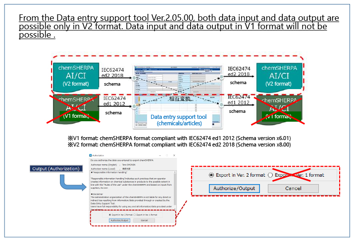 Support for V1 format data will be discontinued in chemSHERPA data entry support tool Ver.2.05.00 (scheduled to be released in the winter of FY2021).